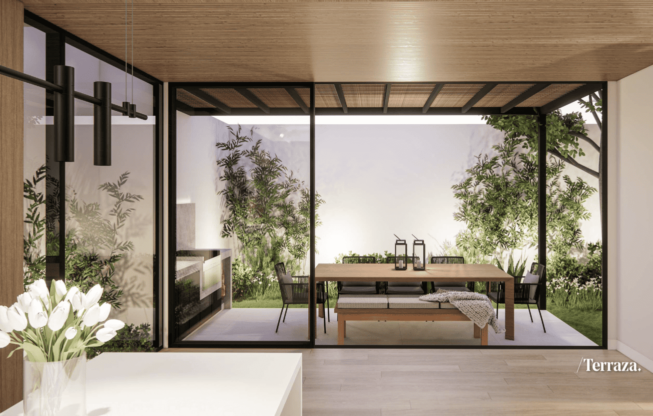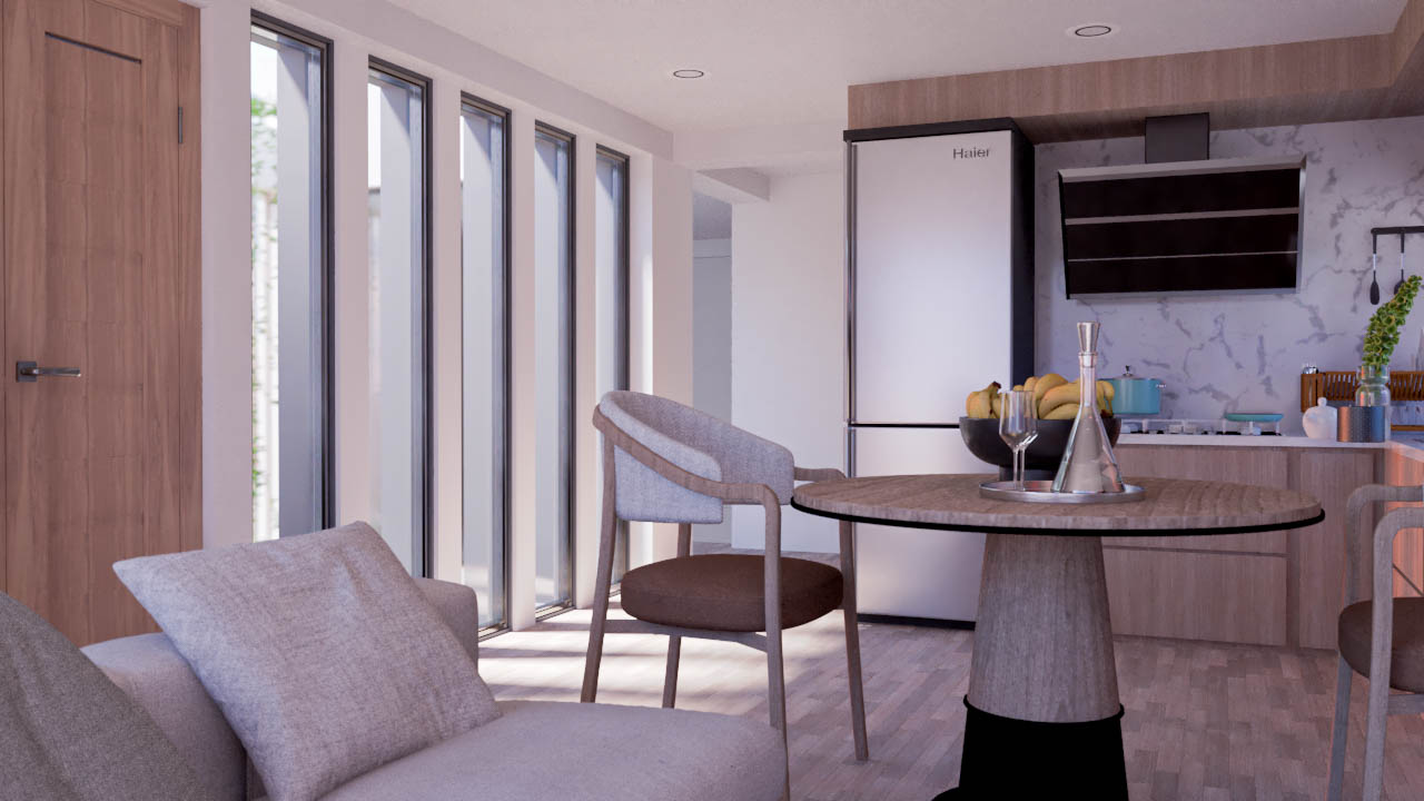Diseñado por Perspectiva en el Condominio Refugio del Valle donde la naturaleza es protagonista Piloto es una vivienda unifamiliar que destaca por su diseño moderno y funcional. En su interior, ofrece amplios espacios que se integran armoniosamente, con una elegante doble altura que aporta una sensación de amplitud y luminosidad. Los acabados de la casa son de alta calidad, con materiales contemporáneos que incluyen detalles en madera y texturas suaves.